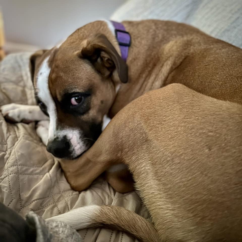 Over a year ago, Maximo was abandoned at a vacant property with a female boxer. The purebred female was taken by a rescue. Her mixed pup Maximo was left behind to fend for himself. As a juvenile he hid from wild animals that killed other strays, scavenged for food & sheltered from storms. A local soon gained Maximo’s trust. He waited daily at her gate for a meal. If he didn’t show, she worried about him. She knew he needed a rescue to reach his 3rd birthday. We heard Maximo’s story & saw videos of how he survived. It was impossible not to help. Welcome Maximo to CH Boxer Rescue! You’re safe now.
