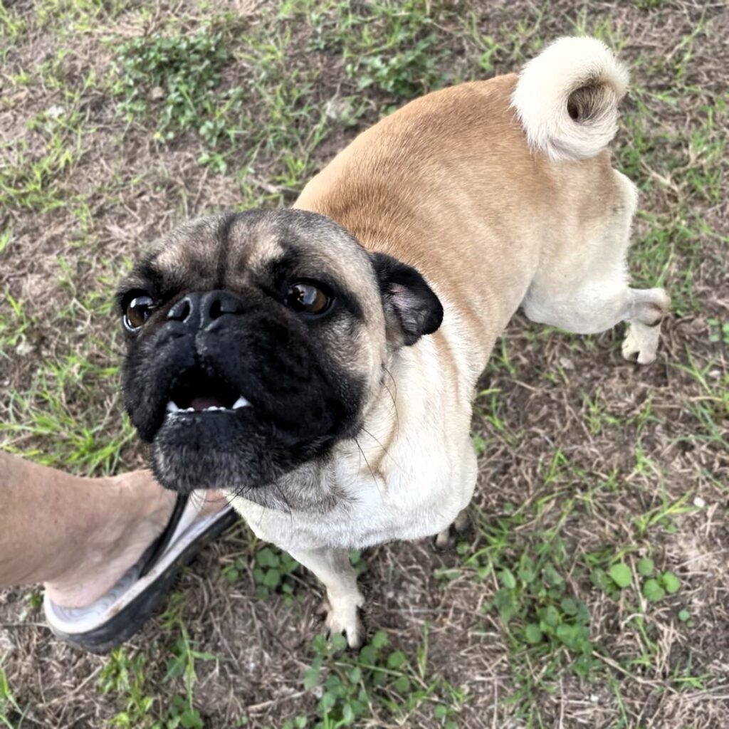 Mo is a 3 year old pug living at daycare until we can find a foster or forever home. He was found wandering as a stray and very underweight. He is only 12 pounds but eating with enthusiasm to pack on a few more lbs. He is vaccinated and will be neutered soon. Mo will surely be voted Most Popular in the daycare class because he loves other dogs and people as much as they love him!