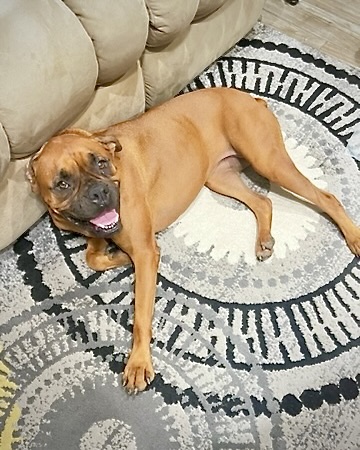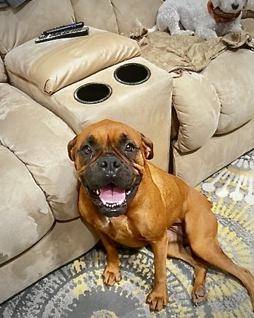 This beautiful 5-year-old fawn Boxer is searching for a peaceful, adult-only home where she can shine as the only pet. Molly was rehomed previously but recently returned because she prefers to be the center of your universe.