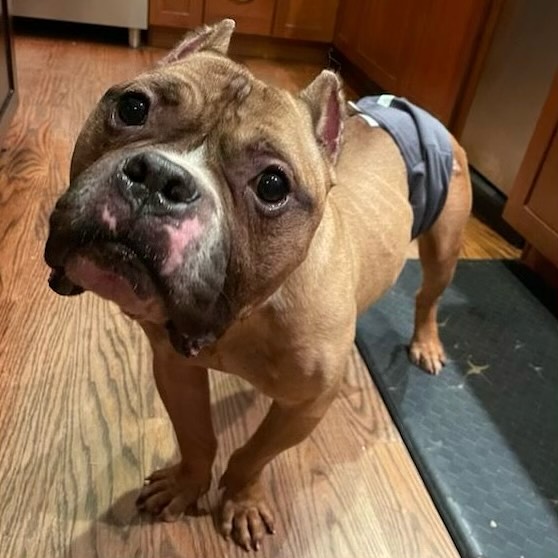 Do you know what your life is missing? Tuna! And we don’t mean the fish! This 6 year old Bully is eager to be your new best friend. In spite of his past life full of neglect, Tuna is a big mush with a big head and an even bigger heart! All he wants to do is be with his people and get belly rubs. Tuna would do well in a home with a female dog or as an only, and he doesn’t enjoy the crate. Tuna has gained several pounds, been neutered and had a dental. He’s ready to go home! Who wants to be Tuna’s lucky family? Apply today to adopt this handsome fella!