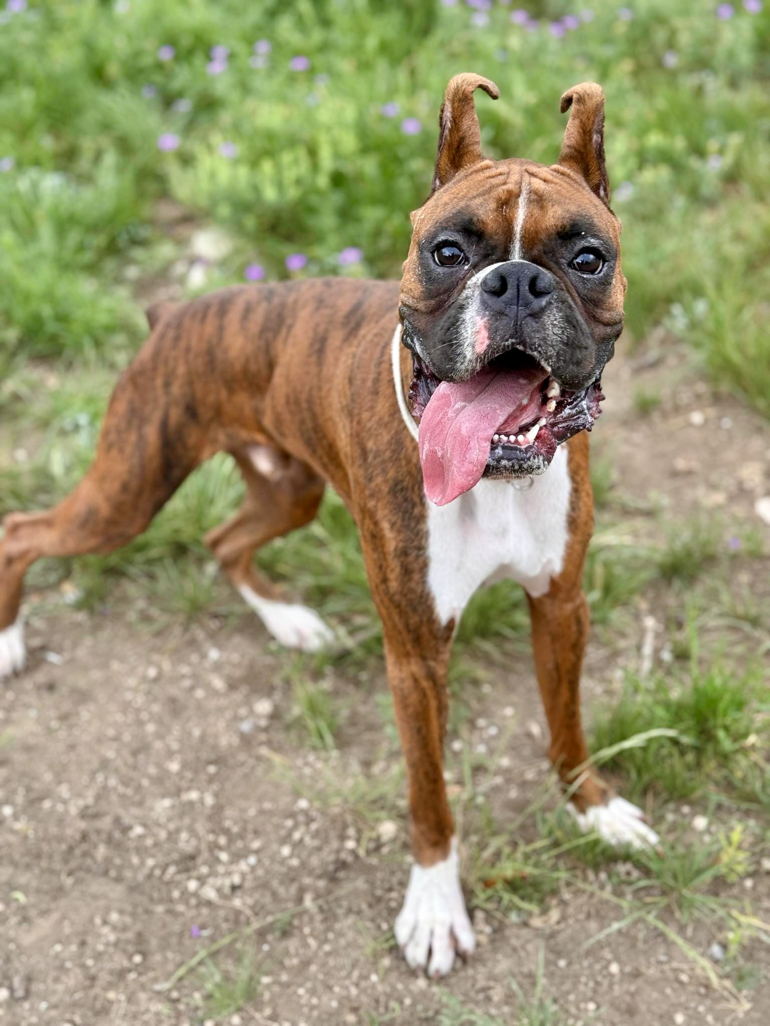 Meet our handsome, 1 YO boxer, Whiskey! He’s still a pup on the smaller side, but his heart is as big as they come.