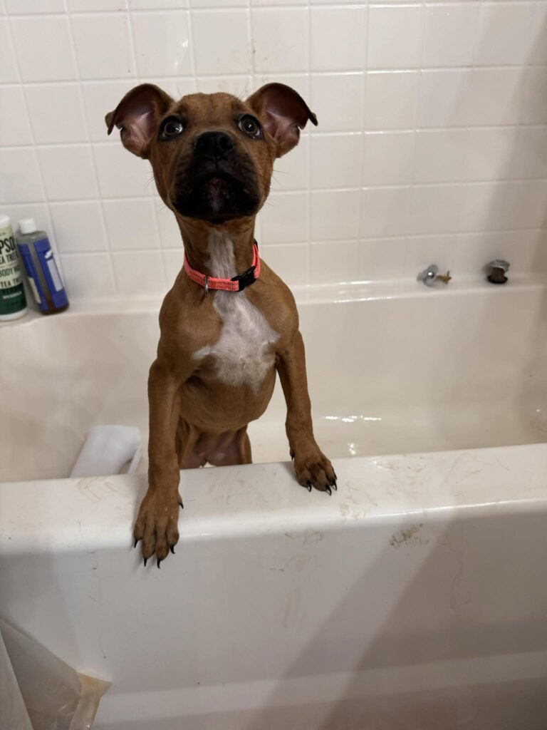 One of our volunteers found Little Lolli lost in the middle of an intersection. She immediately scooped Lolli up, brought her home to safety and searched for an owner. It’s a mystery how 6 week old puppy ended up in the middle of the road and even bigger mystery that no one is looking for her! Lolli is the sweetest and smartest little girl. She’s mastered sit the first week & is working on housetraining. She started puppy vaccines and will be available for adoption in April!