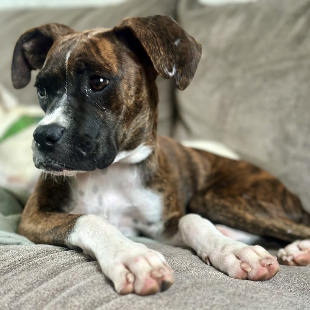 Please meet the Literature Litter! These little beauties were surrendered along with their parents, Drama & Tanka, to CH Boxer Rescue when they didn’t sell. They are approximately 5 months old and 25lbs. They were full of worms and very underweight when we picked them up. In the few weeks we had them, they were brought up to date on vaccines, dewormed and learned that they will get consistent meals. Now that they feel safe, they are playing like puppies and would love homes to call their own! They will be ready for adoption June 2024.