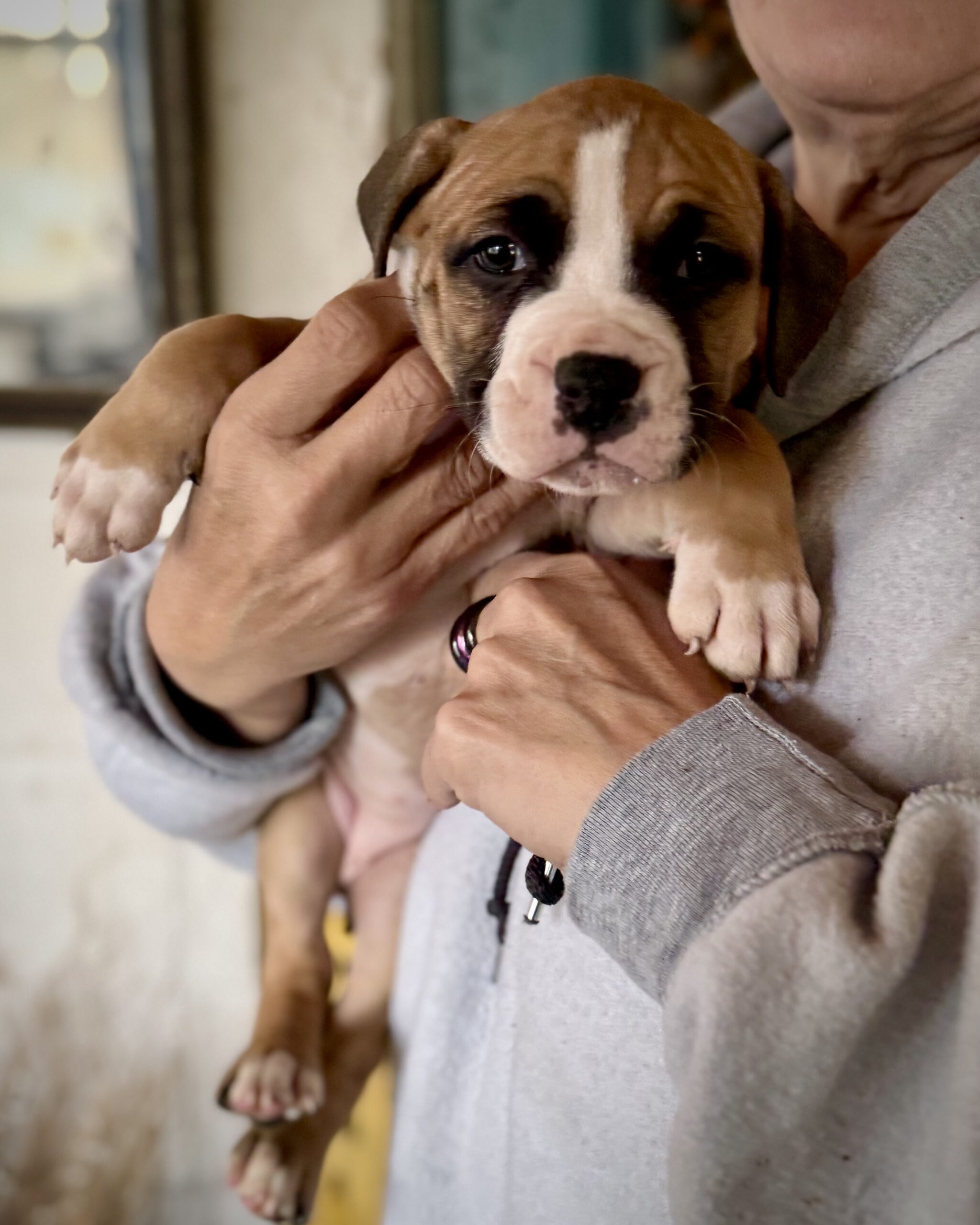 The kind that happens when a Boxer mom and a Shih Tzu dad have puppies and well…… Shihtzer