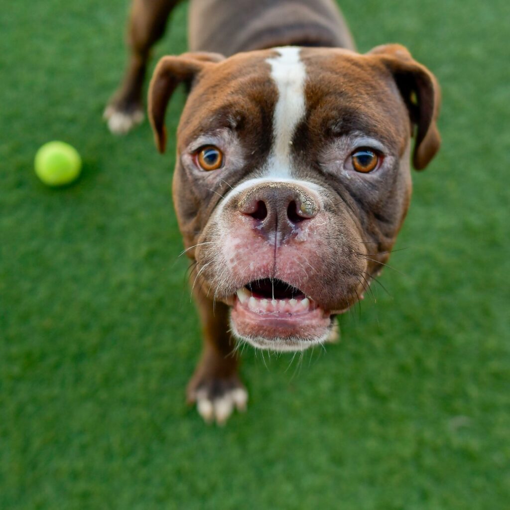 Saved in the nick of time from an overcrowded shelter Rufus is a handsome fella with goofy boxer energy. Rufus is dog friendly, people friendly and super playful. He is about 2 years old and a giant puppy! |
