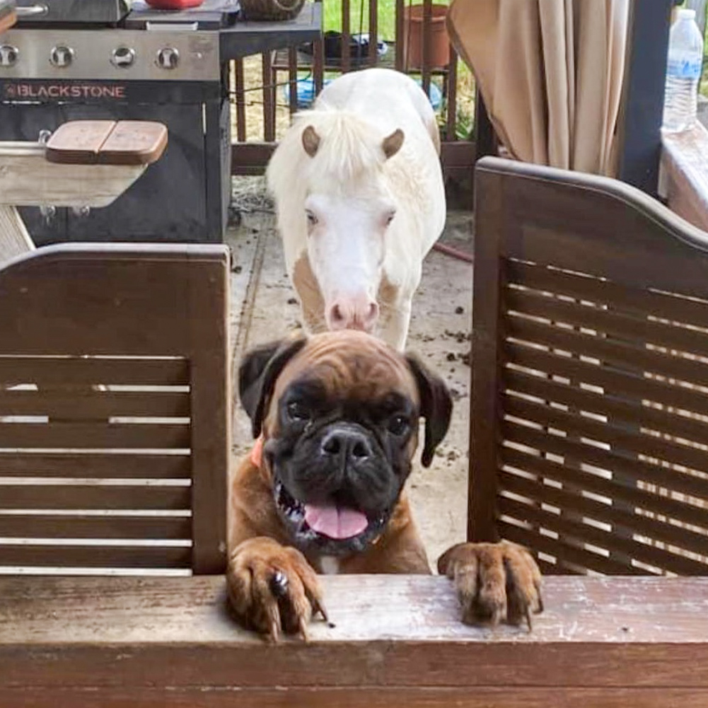 We’d like to introduce you to Roxanne! She was recently found as a stray and is estimated to be 3-4 years old. Roxanne is very sweet and is adjusting well in her temporary foster home. This girl is a lover of dogs, cats, kids and livestock! If it moves, then she loves it! She does have a lot of energy and enjoys being upright like a Hoover vacuum cleaner, and for that reason we feel she would do best in a home with older children. She will need some work on basic manners, but she’s eager to please and has a gentle demeanor. She’s curious and enjoys exploring her surroundings, she especially loves to play freely in the fenced yard. She would love an adoptive home!