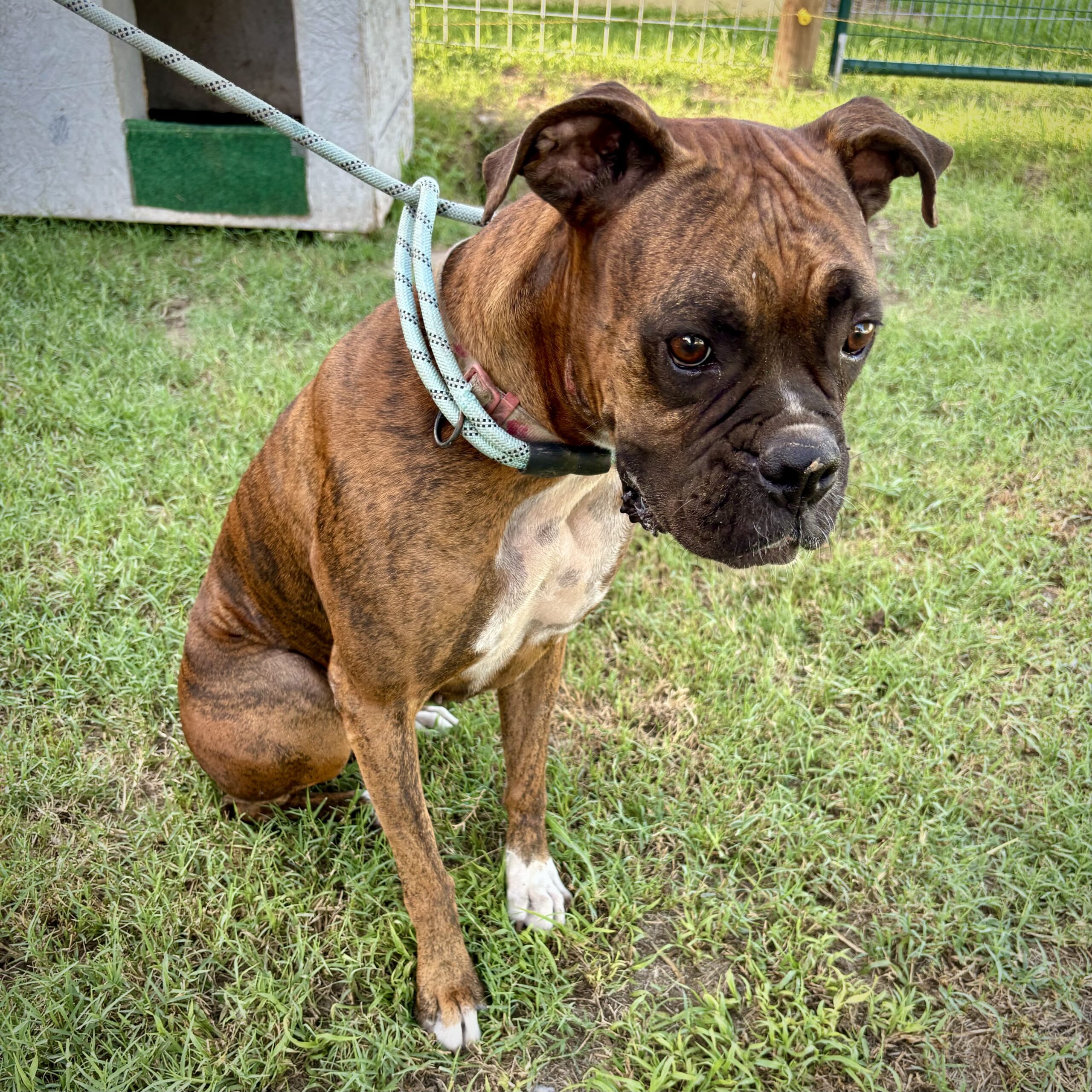 Amara is a sweetheart of a boxer and relatively calm at only 18 months old. She is good on leash, enjoys meeting new human & dog friends. Her favorite thing is car rides. If you are looking for a new ride or die, apply for Amara