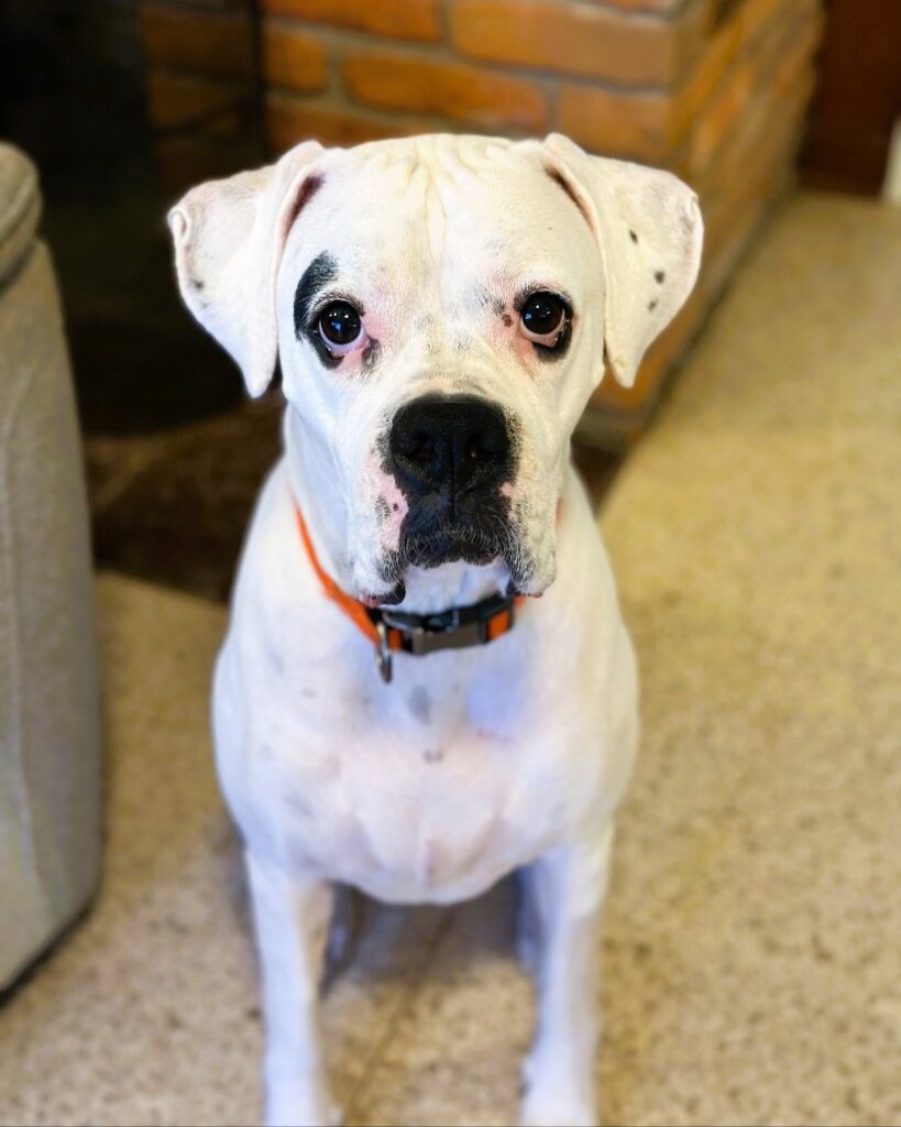 Silas is a 5 year old white boxer being rehomed because his owners are moving and cannot take their dogs. This handsome boy is good with other dogs and accustomed to visiting his doggy sitter with other dogs. He is a little high strung and will need someone to reassure him during this transition. Silas […]